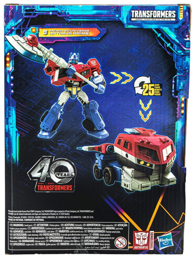 Unite your favorite characters from across the world of Transformers robots into your collection with the Transformers Legacy United Voyager Class Animated Universe Optimus Prime action figure! This 7-inch Animated Universe Optimus Prime action figure converts between robot and truck modes in 25 steps. Gear up for battle with the included Ion Axe and lightbar accessories that attach in both modes. The Animated Universe Optimus Prime figure is inspired by the character from the animated series, Transformers: Animated, and features articulated head, arms, and legs for awesome action poses. Celebrate the last 40 years of Transformers history with Transformers Legacy action figures. Transformers Legacy opens the portal to a whole new universe of -- More Than Meets the Eye -- bringing together every Transformers generation like you've never seen before. Collect and combine different characters to create your ideal Legacy lineup.