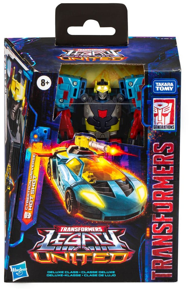 Unite your favorite characters from across the world of Transformers robots into your collection with the Transformers Legacy United Deluxe Class Cybertron Universe Hot Shot action figure! This 5.5-inch Cybertron Universe Hot Shot action figure converts between robot and sports car modes in 17 steps. Gear up for battle with the included blaster and Cyber-Key accessories. The Cybertron Universe Hot Shot figure is inspired by the character from the Transformers: Cybertron animated series and features articulated head, arms, and legs for awesome action poses. Celebrate the last 40 years of Transformers history with Transformers Legacy action figures. Transformers Legacy opens the portal to a whole new universe of -- More Than Meets the Eye -- bringing together every Transformers generation like you've never seen before. Collect and combine different characters to create your ideal Legacy lineup.
