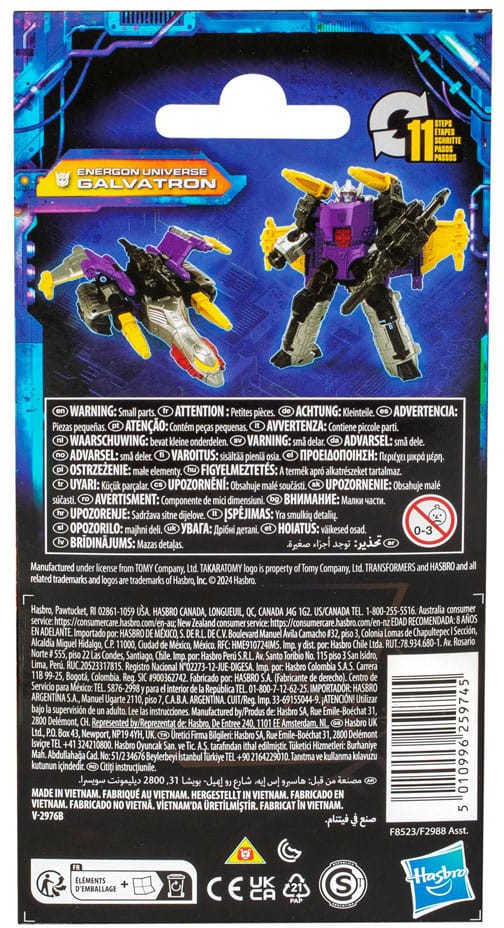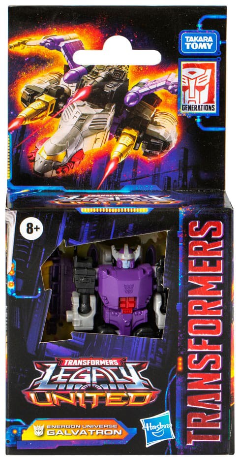 Unite your favorite characters from across the world of Transformers robots into your collection with the Transformers Legacy United Core Class Energon Universe Galvatron action figure! This 3.5-inch Energon Universe Galvatron action figure converts between robot and jet modes in 11 steps. Gear up for battle with the included cannon and blaster accessories that attach in both modes. The Energon Universe Galvatron figure is inspired by the character from the animated series, Transformers: Energon, and features articulated head, arms, and legs for awesome action poses. Celebrate the last 40 years of Transformers history with Transformers Legacy action figures. Transformers Legacy opens the portal to a whole new universe of -- More Than Meets the Eye -- bringing together every Transformers generation like you've never seen before. Collect and combine different characters to create your ideal Legacy lineup.
