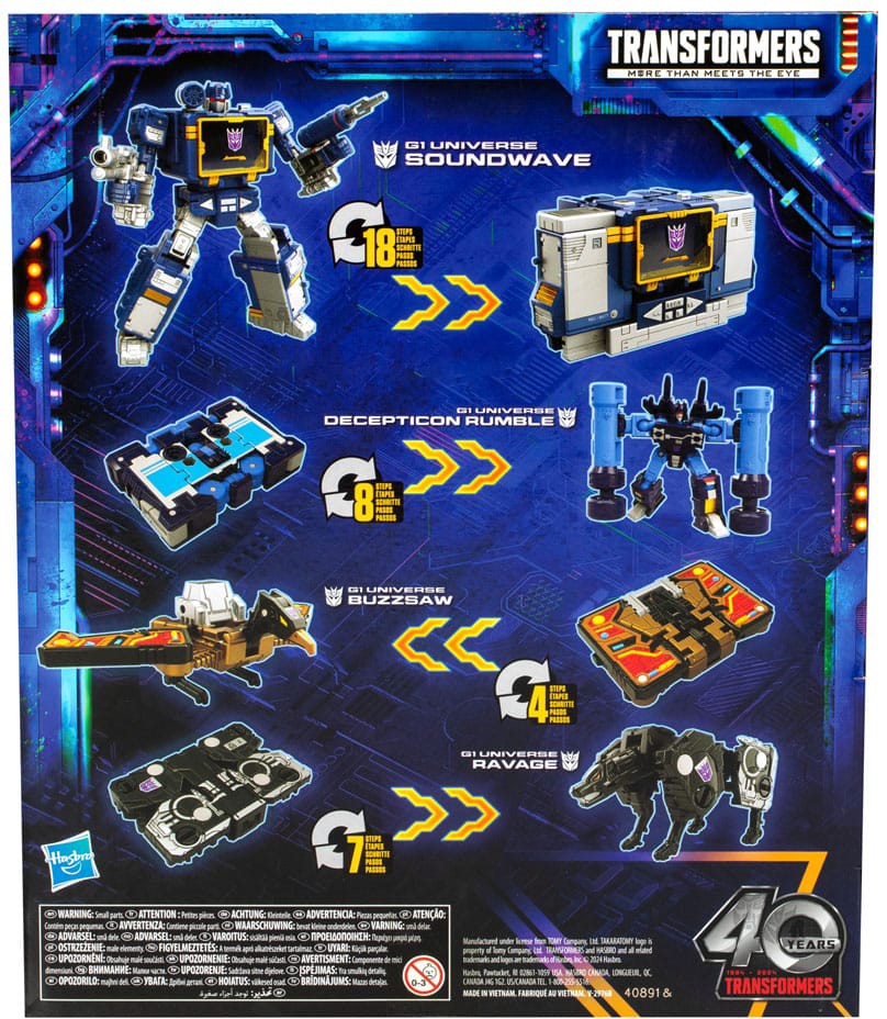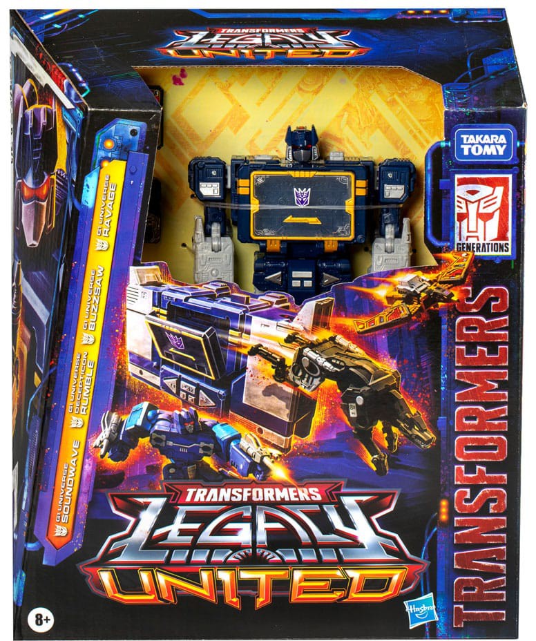 Unite your favorite characters from across the world of Transformers robots into your collection with the Transformers Legacy United Voyager Class G1 Universe Soundwave action figure! This 7-inch G1 Universe Soundwave action figure converts between robot and cassette player modes in 18 steps. It comes with G1 Universe Buzzsaw, Ravage, and Decepticon Rumbler figures that convert to cassette tapes in 4, 7, and 8 steps. The G1 Universe Soundwave figure is inspired by the character from the animated series, The Transformers, and features articulated head, arms, and legs for awesome action poses. Celebrate the last 40 years of Transformers history with Transformers Legacy action figures. Transformers Legacy opens the portal to a whole new universe of -- More Than Meets the Eye -- bringing together every Transformers generation like you've never seen before. Collect and combine different characters to create your ideal Legacy lineup.