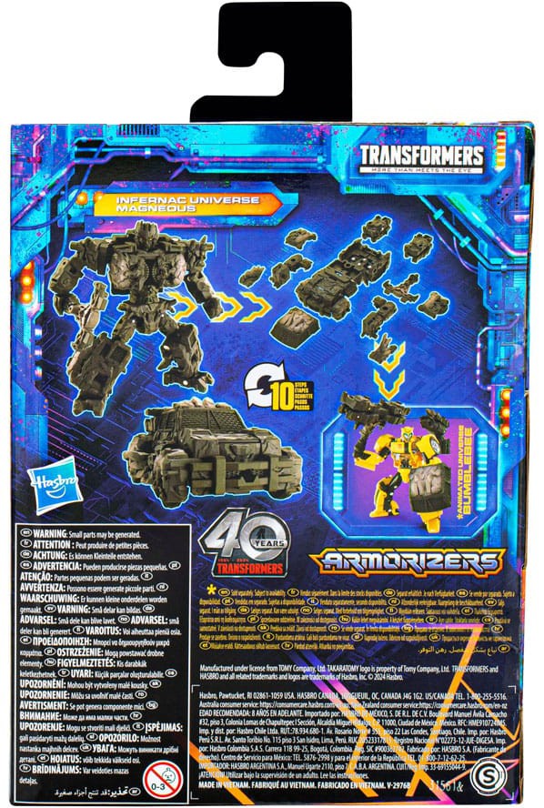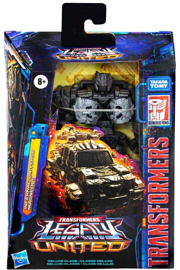 Unite your favorite characters from across the world of Transformers robots into your collection with the Transformers Legacy United Deluxe Class Infernac Universe Magneous action figure! This 5.5-inch Infernac Universe Magneous action figure is an Armorizer, a creature made from living rocks and minerals on other planets! Combine this Armorizer toy with other Transformers figures to create cool rock armor and weapons. Figure also converts between rock creature and offroad vehicle modes in 10 steps. Gear up for battle with the included rock axe and shield accessories. Celebrate the last 40 years of Transformers history with Transformers Legacy action figures. Transformers Legacy opens the portal to a whole new universe of -- More Than Meets the Eye -- bringing together every Transformers generation like you've never seen before. Collect and combine different characters to create your ideal Legacy lineup.