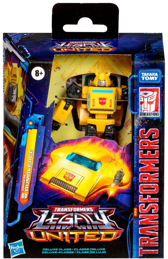 Unite your favourite characters from across the world of Transformers robots into your collection with the Transformers: Legacy Deluxe Class Origin Bumblebee action figure! This 5.5-inch Origin Bumblebee action figure converts between robot and Cybertronian hovercraft modes in 23 steps. The figure comes with a blaster and 5 energy accessories that attach in robot mode. The Origin Bumblebee figure is inspired by the first episode of the G1 animated series and features articulated head, arms, and legs for awesome action poses. Transformers: Legacy opens the portal to a whole new universe of -- More Than Meets the Eye -- bringing together every Transformers generation like you've never seen before. Collect and combine different characters to create your ideal Legacy lineup.