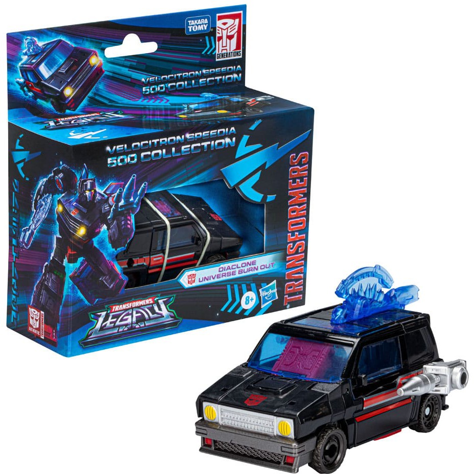 Universes collide! Transformers: Legacy brings together fan-favorite characters from across the Transformers multiverse. Figures feature deco inspired by their universe with an updated Generations design. In honor of the almost 40-year legacy of Transformers entertainment, the fandoms come together from across the Transformers multiverse, all in one toy line. The race is on! Bots from across the multiverse have gathered on Velocitron to participate in the Speedia 500, a planet-wide race to determine its next leader. He may not be the fastest, but Burn Out is determined to win the Speedia 500.