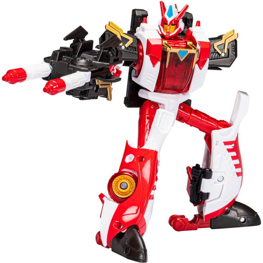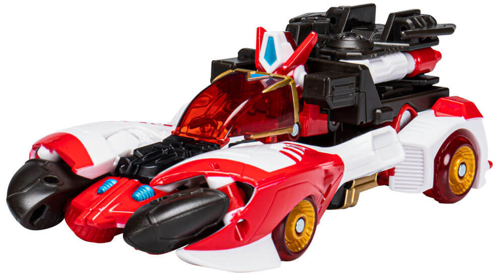 Förvandlas från robot till bil i 19 steg. Kommer med double-barreled blaster som tillbehör.