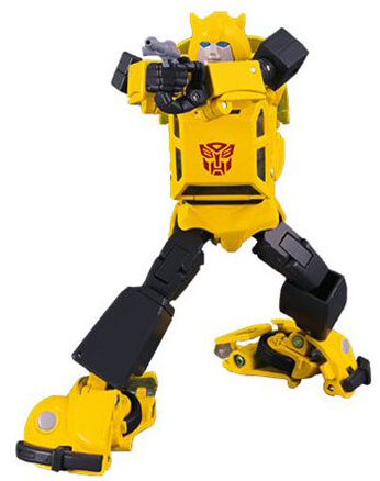 He's back - and he's friendly! It's the return of Bumblebee from the first Transformers cartoon, completely animated with all of the amazing detail of the Takara-Tomy Masterpiece Series! The robot reproduces the original animation design, coloring and proportions from the classic Sunbow series The Transformers. Thanks to the incredible range of motion, Bumblebee's action poses make this the ultimate display piece!