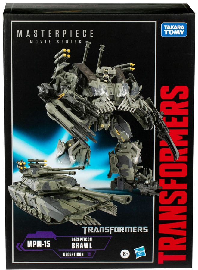 Movie Masterpiece Decepticon Brawl actionfigur är modellerad efter Transformers live action-filmerna och har filminspirerade detaljer och tillbehör, perfekt för att visa upp på samlarhyllorna. Den här autentiska Transformers-samlarfiguren är inspirerad av CAD-filerna från den första Transformers-filmen och innehåller gjutna delar och cirka 200 deco ops och 50 ledpunkter. Denna Decepticon Brawl-figur har specifikationer och detaljer inspirerade av karaktärens utseende i den första Transformers-filmen och har ledade armar, ben, midja och huvud. Figuren har missilkapslar på axlarna, armhandske med minipistol, bröstkorgsexplosioner i PVC och missilavfyrning. Decepticon Brawl-figuren kan konverteras mellan filmens exakta robot- och modifierade M1A1 Abrams-tankfordonslägen i 36 steg och har ledade armar, ben, midja, fingrar och huvud.