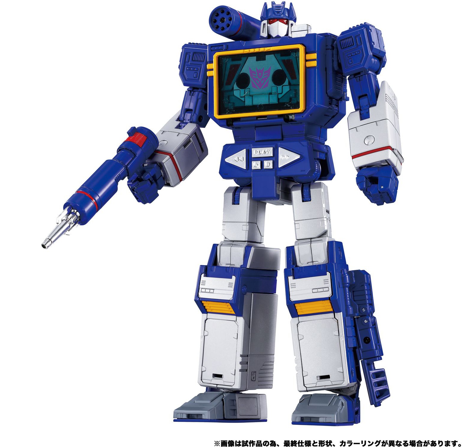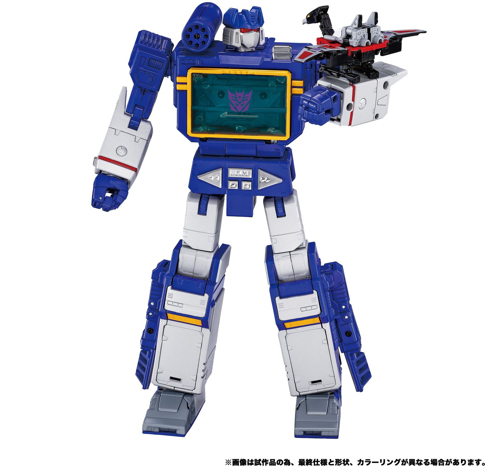 Soundwave kan förvandlas mellan klassisk kassettspelare och robotläge. Den medföljande Condor (Laserbeak)-figuren kan placeras i Soundwaves bröst i kassettläge eller fästas på hans axel eller arm. Detta Masterpiece-set innehåller flera premiumtillbehör för anpassad utställning, inklusive vibrationsblaster, scanner, Energon-kuber och mer.