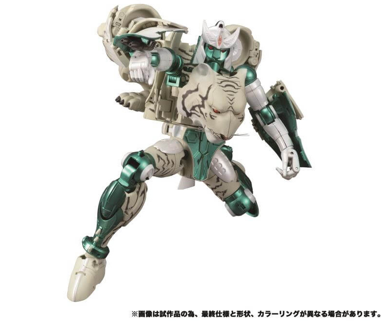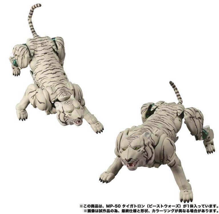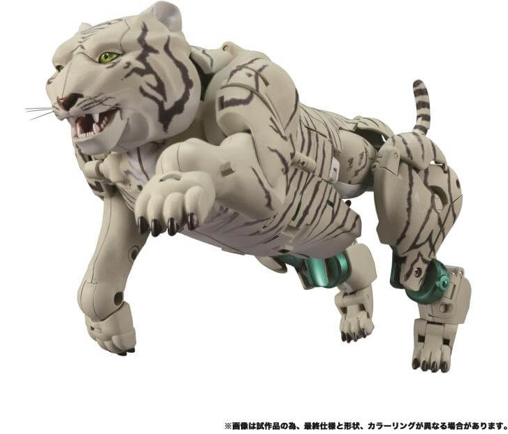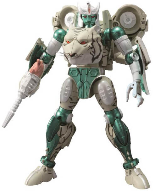 From the Beast Wars animated series, Tigatron joins the Hasbro/Takara Tomy Transformers Masterpiece line as MP-50. Standing in the classic Masterpiece scale and faithfully reproduced, Tigatron is fully poseable allowing you to recreate your favorite scenes from the series. Tigatron transforms from robot to white tiger and includes several accessories.