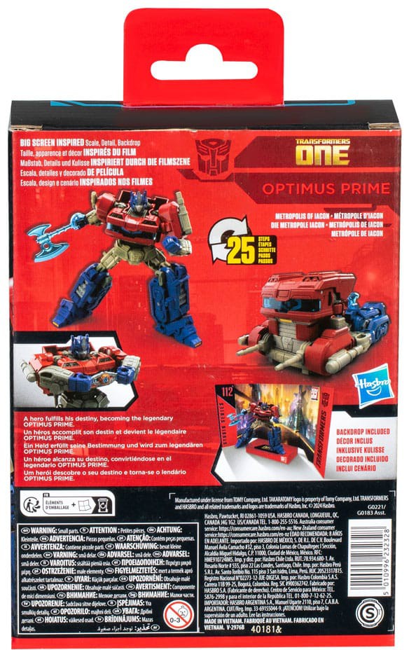 Bring the epic action of the Transformers movies from the big screen into your collection with the Transformers Studio Series Deluxe Class Optimus Prime action figure, inspired by Transformers: One! Transformers Studio Series toys are collectible action figures that feature movie-inspired details and accessories. Convert the Studio Series Transformers action figure from robot to Cybertronian truck mode in 25 steps and pose the Optimus Prime toy in the included Metropolis of Iacon removable backdrop scene. Look for more Transformers Studio Series collectible figures to build a movie-inspired collection.