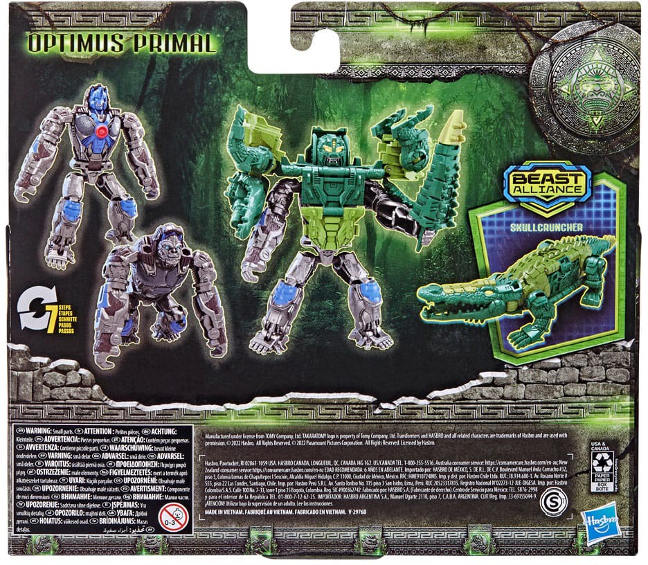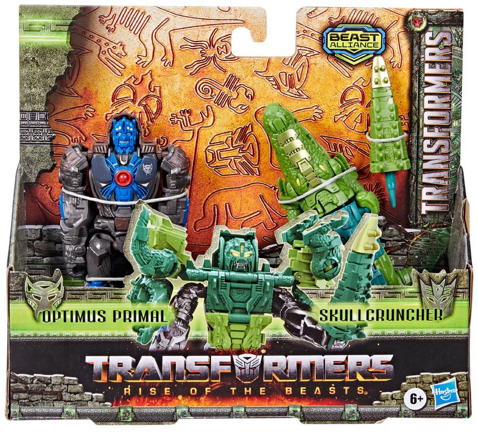 Optimus Primal, the strong Maximal leader, armors up for battle with his beast partner Skullcruncher. Classic Transformers robots and beast robots join forces in an epic alliance! Combine the Beast Alliance Beast Combiner 2-Pack Optimus Primal and Skullcruncher toys to gear up for battle! (Each sold separately, subject to availability.)