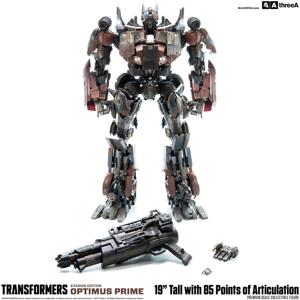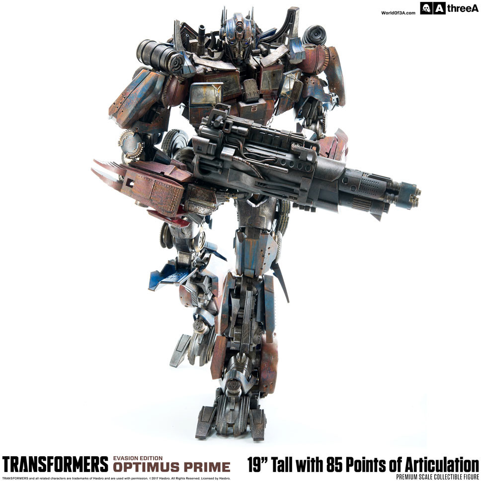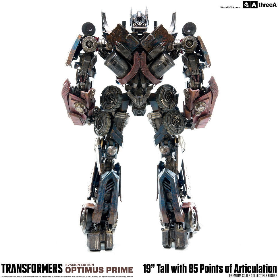 Hasbro and ThreeA proudly present Transformers Age of Extinction Optimus Prime Evasion Edition collectible figure. The Premium Scale Evasion Edition perfectly captures the initial appearance of Optimus Prime as he seeks refuge, disguised as a classic burnt out cab-over-engine truck, and is discovered by the Yeager family. It is not long before he must reveal himself to be the one, the only, the truly awesome Leader of the Autobots - Optimus Prime!