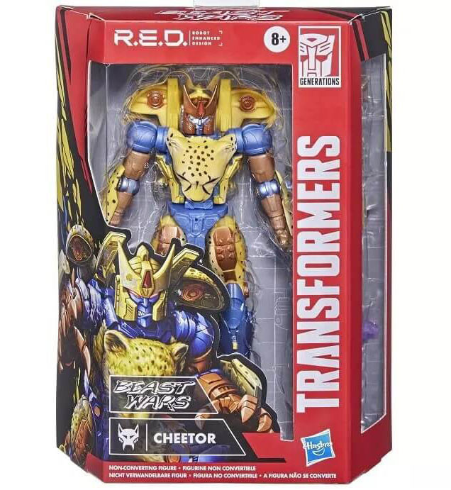 Denna R.E.D.-figur är utformad för att ge samlare den mest skärmexakta versionen av karaktärerna att visa upp i sin samling. Den modiga Cheetor, från Beast Wars animerade serie, har 26 ledpunkter. Den innehåller två uppsättningar händer, en svansblaster, en Energonkristall och två blasteffekttillbehör. Bröstet kan tas bort för att avslöja figurdetaljer inspirerade av vad som skulle vara den inre funktionen hos en Transformer.