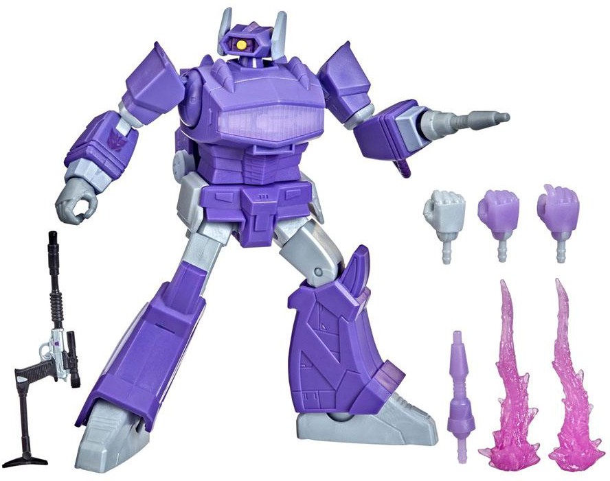 Highly poseable with 39 deco ops, this Shockwave R.E.D. figure was designed to bring collectors our most screen-accurate version of the character to display on their shelf. The logical Decepticon scientist is inspired by the character's appearance in the 1984 animated series, The Transformers and features 24 points of articulation. Includes 4 alt hands, 2 blast effects, and Megatron blaster accessories.