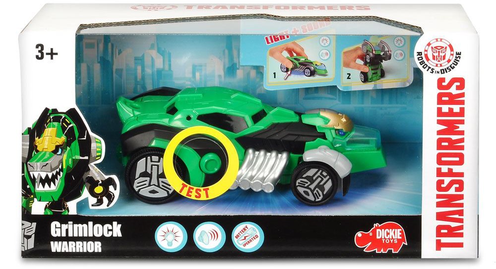 This Transformers Robots in Disguise Warriors Class GrimlockFigure converts fast from robot mode to sports car mode. Including Sound and Light-Up Effects. Measures approx. 15 cm long and comes in a window box with Try-Me Function.