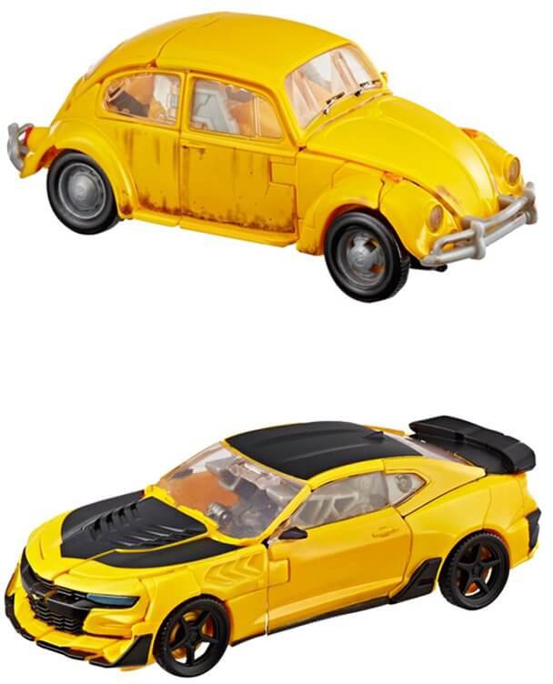The Studio Series Deluxe 24 Bumblebee figure converts to 1967 VW Beetle mode in 22 steps and the Studio Series Deluxe 25 Bumblebee converts to 2016 Camaro mode in 17 steps. Each figure comes with 2 accessories. Remove backdrops to showcase Bumblebee figures in the California Highway and London Escape scenes.
