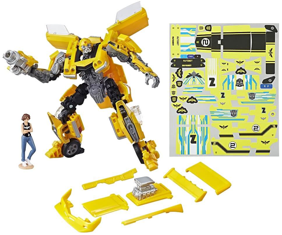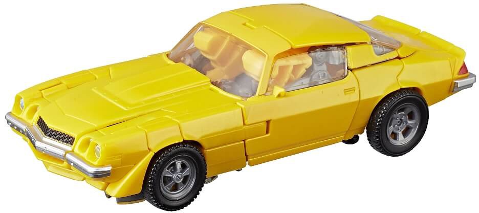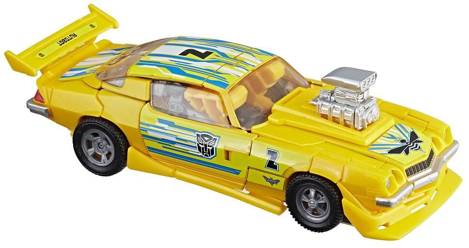 The figure converts from robot to 77 Camaro mode in 23 steps. Turn the classic Bumblebee car into a racecar with 8 included accessories for customization. Remove the backdrop included in the pack to showcase the Bumblebee and Charlie figures in the Highway Freedom scene. Bumblebee robot stands about 11 cm tall.