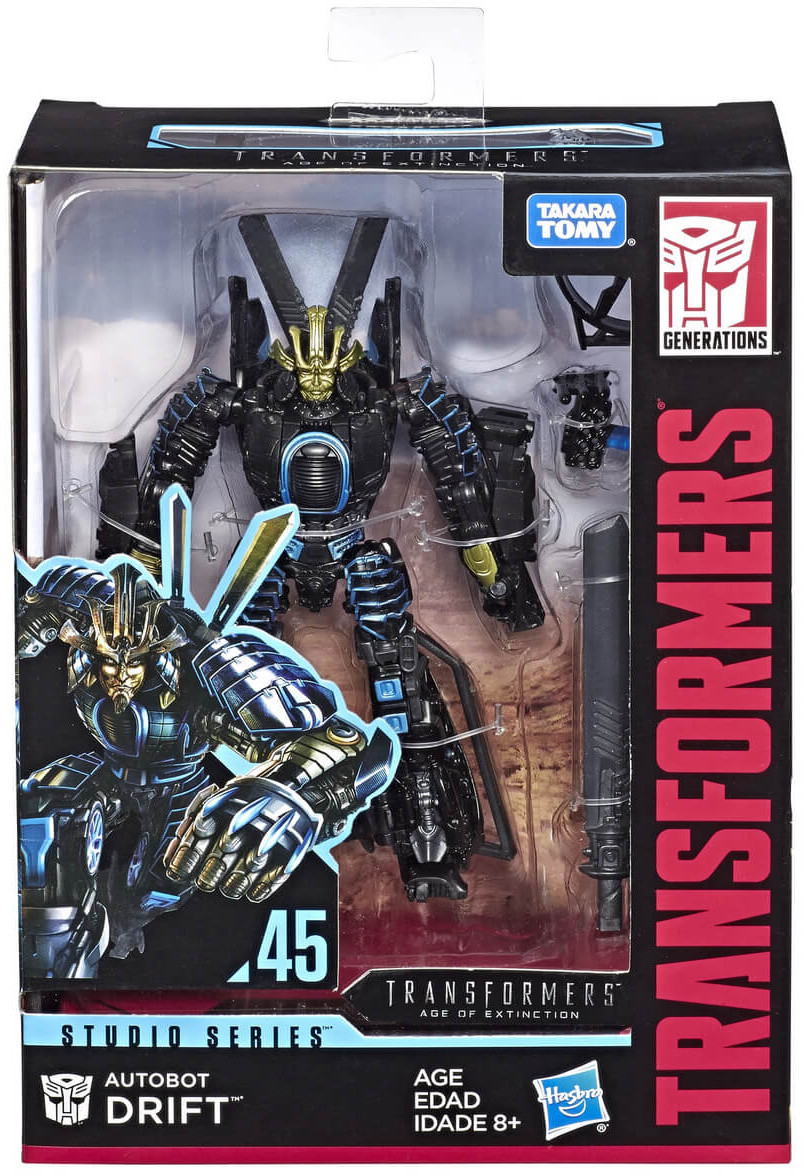 Includes: Transformers Studio Series 45 Deluxe Class Autobot Drift figure, 2 accessories, removable backdrop, and instructions.