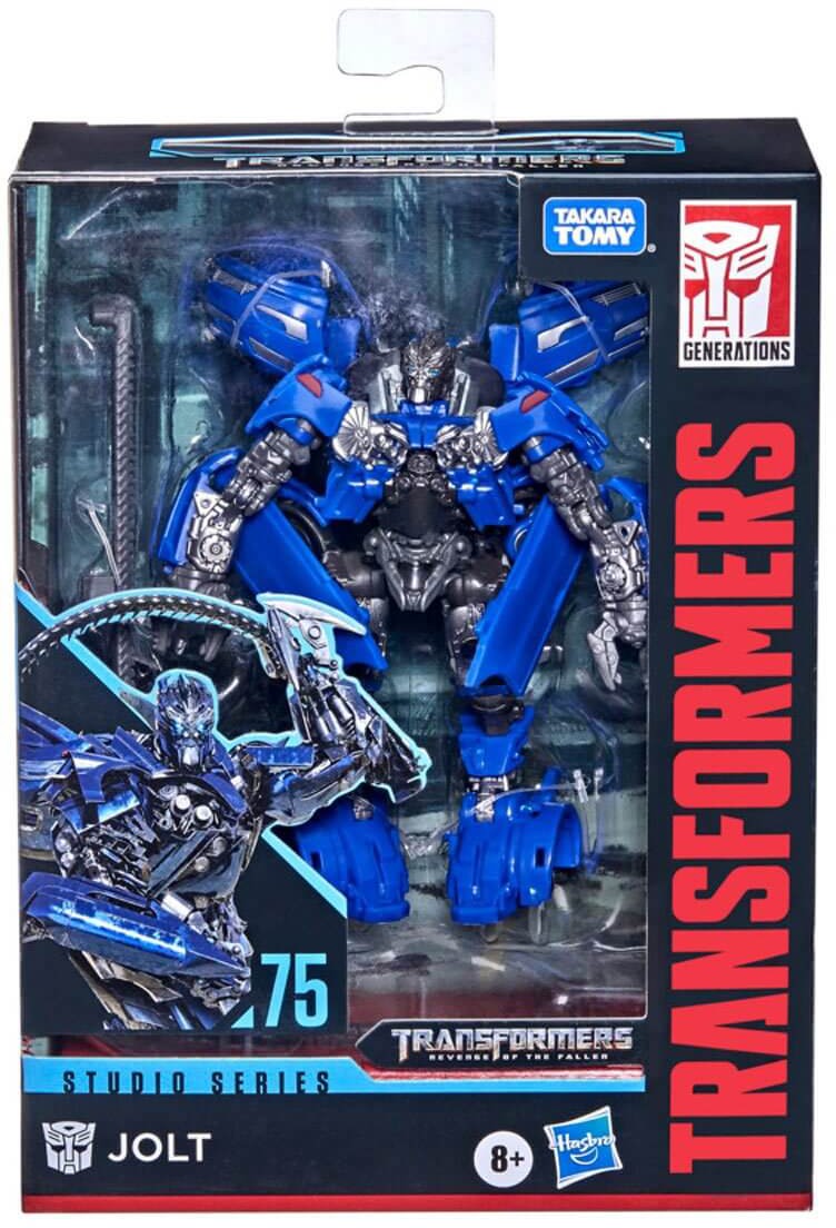 Get ready for action with the Transformers Studio Series Deluxe Class Jolt! Inspired by his appearance in Transformers: Revenge of the Fallen, Jolt includes more detail than ever and includes two awesome weapons inspired by the films. Figure includes removable cardboard backdrop in the packaging, so be sure to save it and don't throw it away when you open your awesome plastic robot in disguise!
