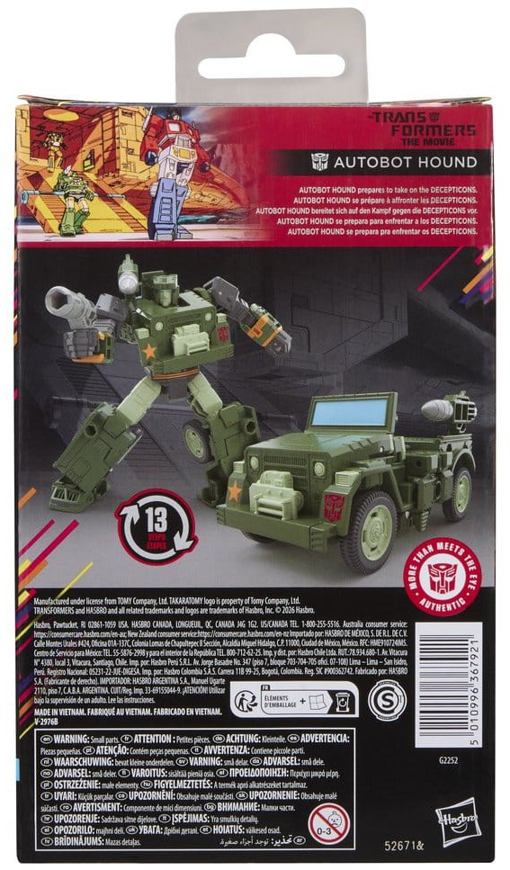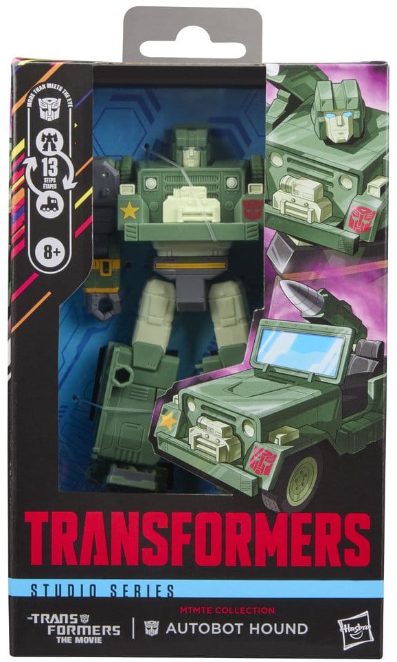 Celebrate the 40-year anniversary of The Transformers: The Movie with the Transformers Studio Series MTMTE Collection Autobot Hound action figure. The 5.5-inch (14 cm) figure converts from robot to Army vehicle mode in 13 steps. With movie-inspired details, intricate poseability, and attachable shoulder cannon and blaster accessories, this Autobot Hound figure makes an awesome addition to any collection. Look for more Transformers collectible toys (sold separately, subject to availability) featuring favorite characters like Optimus Prime, Bumblebee, Megatron, and more to create a lineup that is — More Than Meets the Eye.