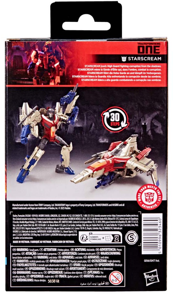 TRANSFORMERS ONE STARSCREAM: This Transformers Studio Series Starscream action figure is highly articulated for posability and features film-inspired deco and details.