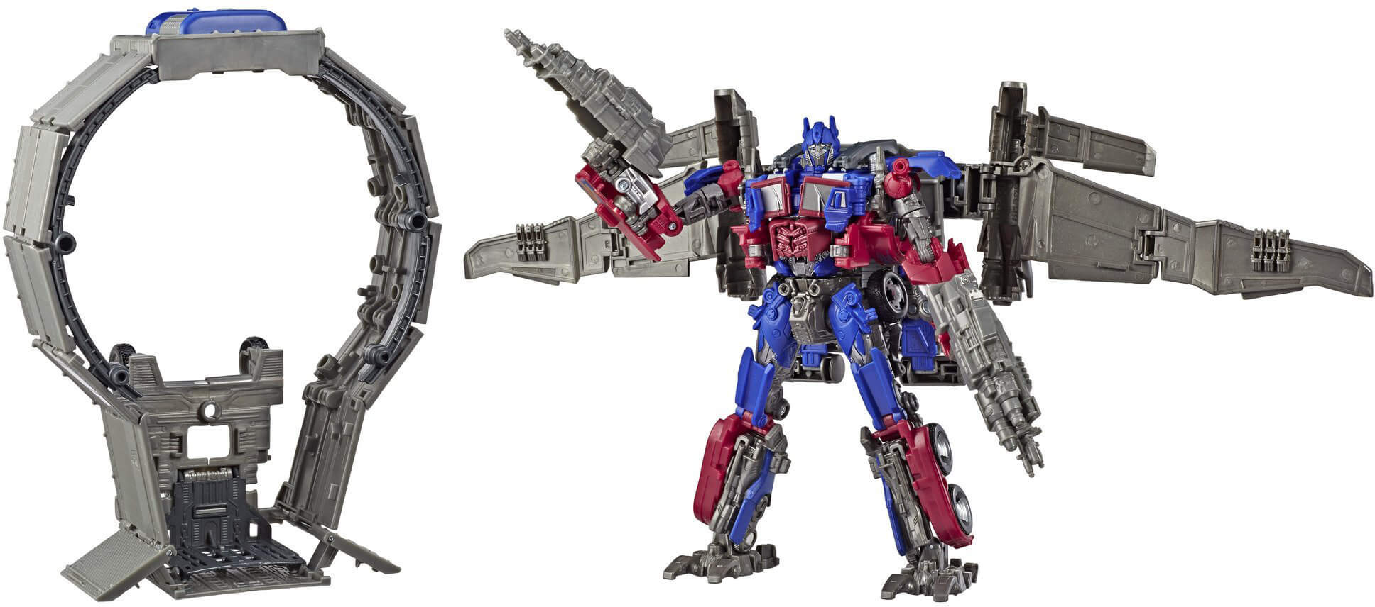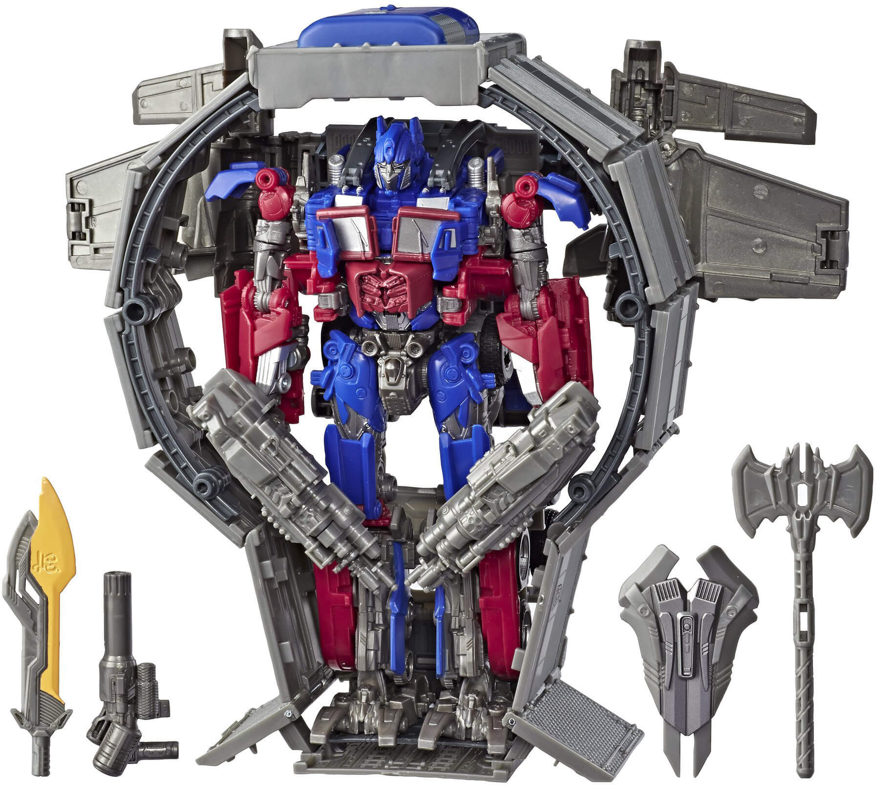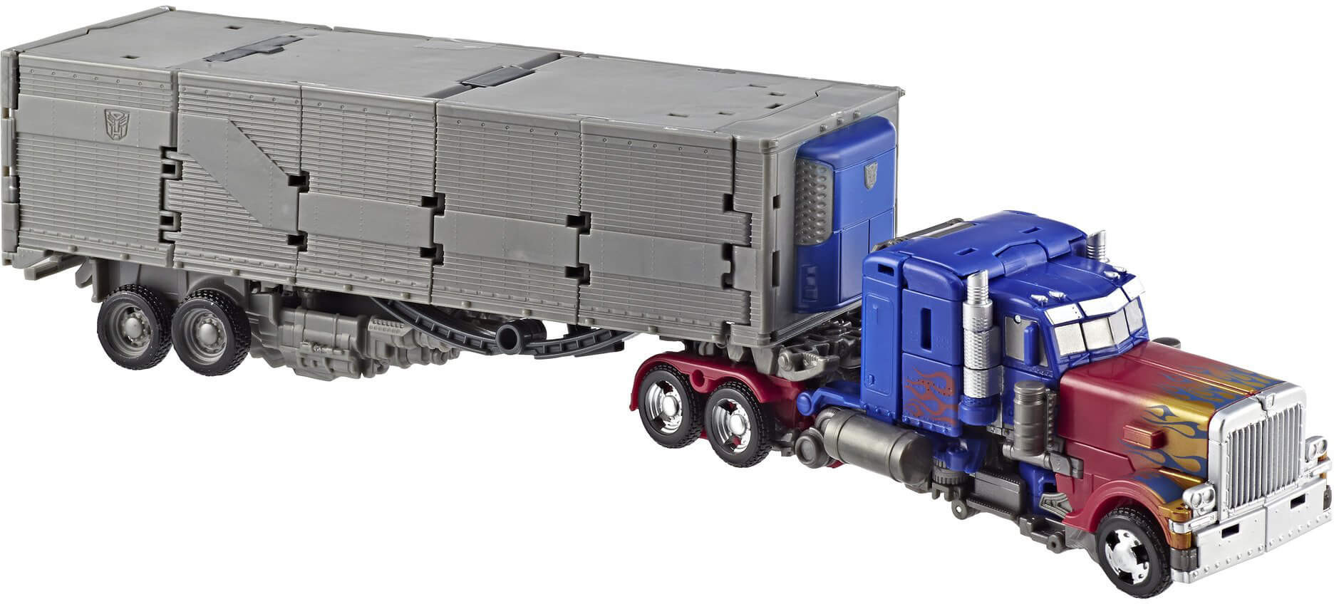 This Studio Series 44 Leader Class Optimus Prime figure features vivid, movie-inspired deco and converts from robot to truck mode in 44 steps. Truck trailer converts into jetwing tech to form Jetwing Optimus Prime. Remove backdrop to showcase Optimus Prime in the Battle of Chicago scene. Includes 5 detailed accessories: 2 blasters, 2 Energon weapons, and shield. For kids age 8 and up!