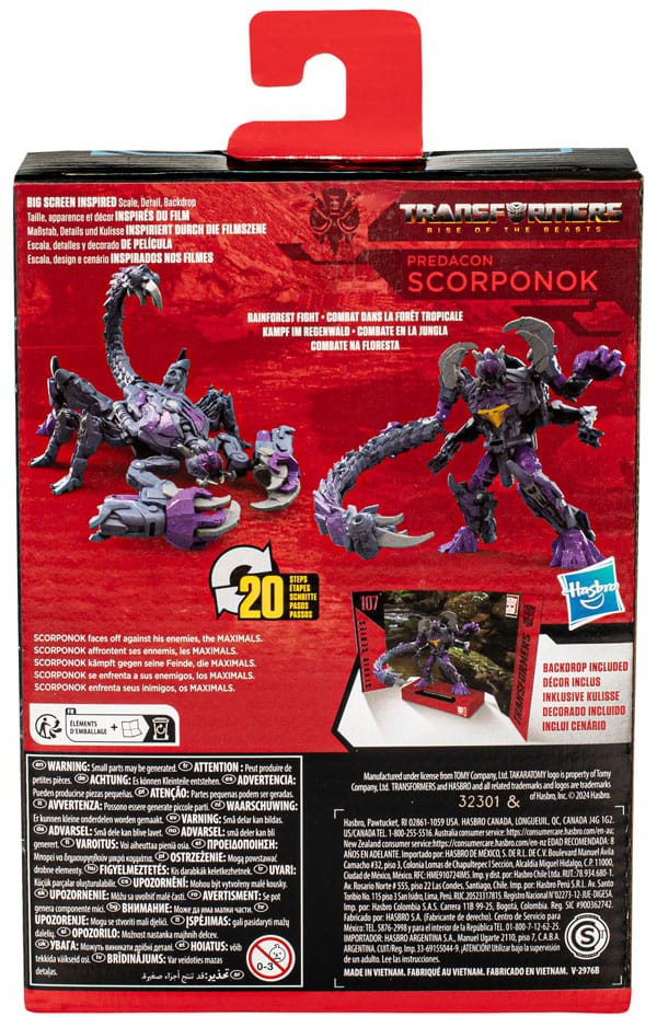 Bring the epic action of the Transformers movies from the big screen into your collection with the Transformers Studio Series Deluxe Class Predacon Scorponok action figure, inspired by Transformers: Rise of the Beasts! Transformers Studio Series toys are collectible action figures that feature movie-inspired details and accessories. Convert the Studio Series Transformers action figure from robot to scorpion mode in 20 steps and pose the Predacon Scorponok toy in the included Rainforest Fight removable backdrop scene. Look for more Transformers Studio Series collectible figures to build a movie-inspired collection!