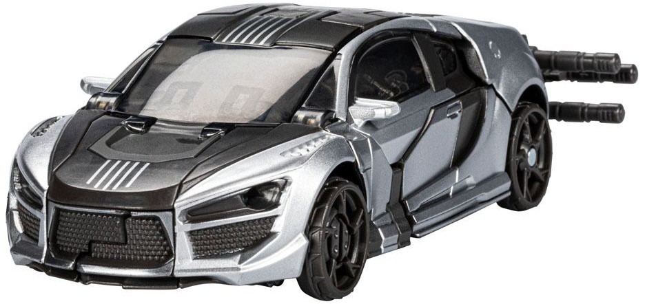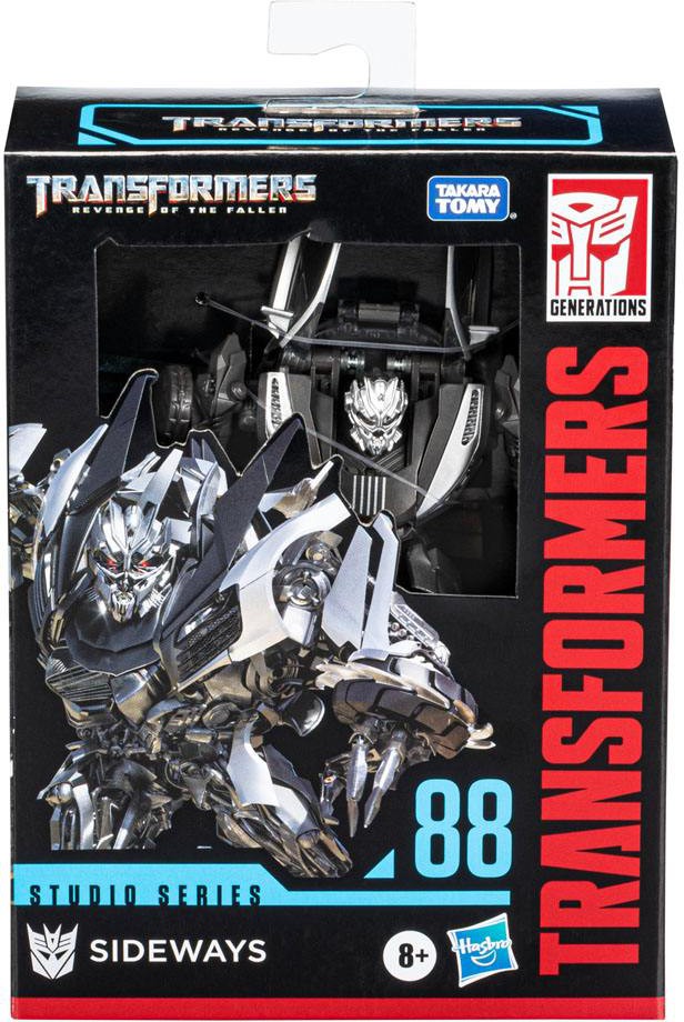 This Studio Series 88 Deluxe Class Transformers: Revenge of the Fallen-inspired Sideways figure converts from robot to sports car mode in 20 steps. Remove backdrop to showcase Sideways in the Shanghai Pursuit scene. In the Shanghai Pursuit scene from Transformers: Revenge of the Fallen, Sideways attempts a speedy escape through the Shanghai streets before being sliced in half by Sideswipe. Pose the figure out with the included blaster accessory and imagine re-creating this classic movie moment!