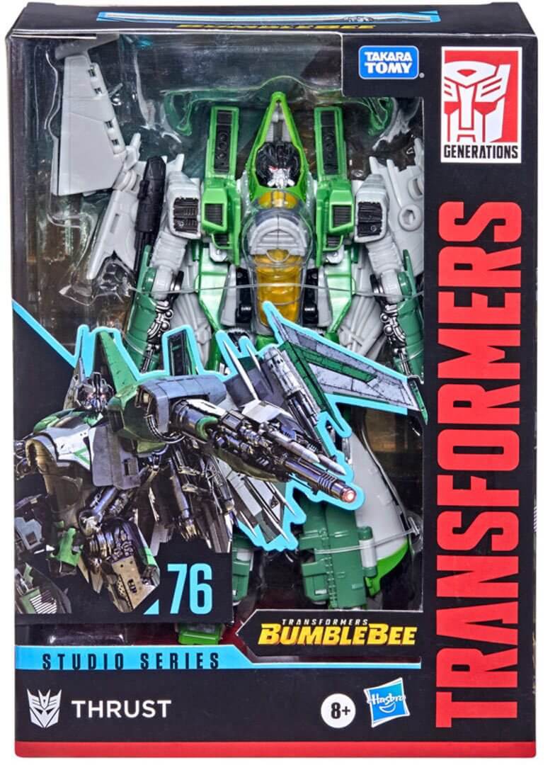 This Transformers Studio Series Voyager Transformers: Bumblebee Thrust figure converts from robot to tetrajet mode in 31 steps. Remove backdrop to showcase Thrust in the Cybertron Falls scene. In the Cybertron Falls scene from Transformers: Bumblebee, the Autobot resistance retreats to escape the planet as Cybertron falls under Decepticon control. Thrust and his fellow seekers destroy the Autobot launchpad in an effort the prevent their escape. Pose the figure out with the included Null Ray accessories and imagine recreating this classic movie moment!