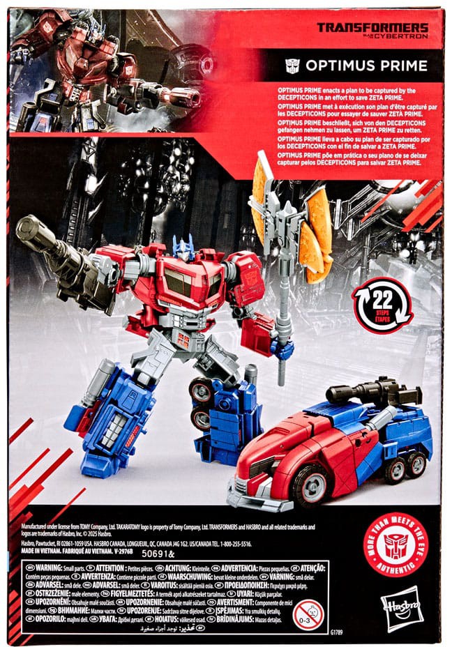 Experience the epic action of the Transformers: War for Cybertron video game with the Transformers Studio Series Optimus Prime toy! Part of the MTMTE Collection, the 6.5-inch (16.5 cm) figure converts from robot action figure to Cybertronian truck mode in 22 steps. With game-inspired details including battle-worn deco, intricate poseability, and ion blaster, Energon axe, and Matrix of Leadership attachable accessories, this Optimus Prime action figure makes an awesome addition to any collection.