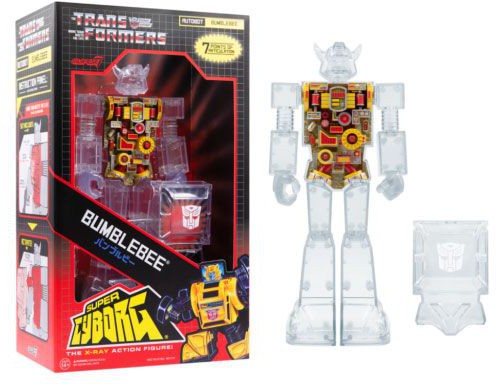 Ett officiellt Super7 x Transformers-samarbete. Den 11-tums Transformers Bumblebee Super Cyborg vinylfiguren i full färg har ställbara armar och ben, en blaster och en avtagbar bröstplatta för att synliggöra hans Cybertronian-teknik!