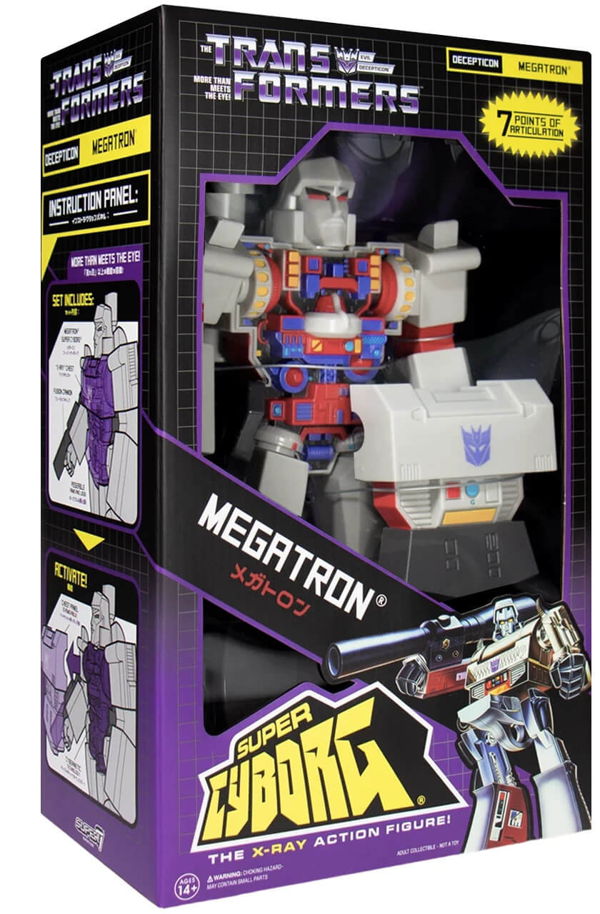 An official Super7 x Transformers collaboration. The 30 cm Megatron Super Cyborg features poseable arms and legs, an ion blaster, and a removable chest plate to reveal his cybernetic technology!