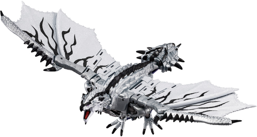 Den högt artikulerade figuren är perfekt för dynamiska poser i display, och i monsterläge är huvud, käke, hals, vingar och ben rörliga.