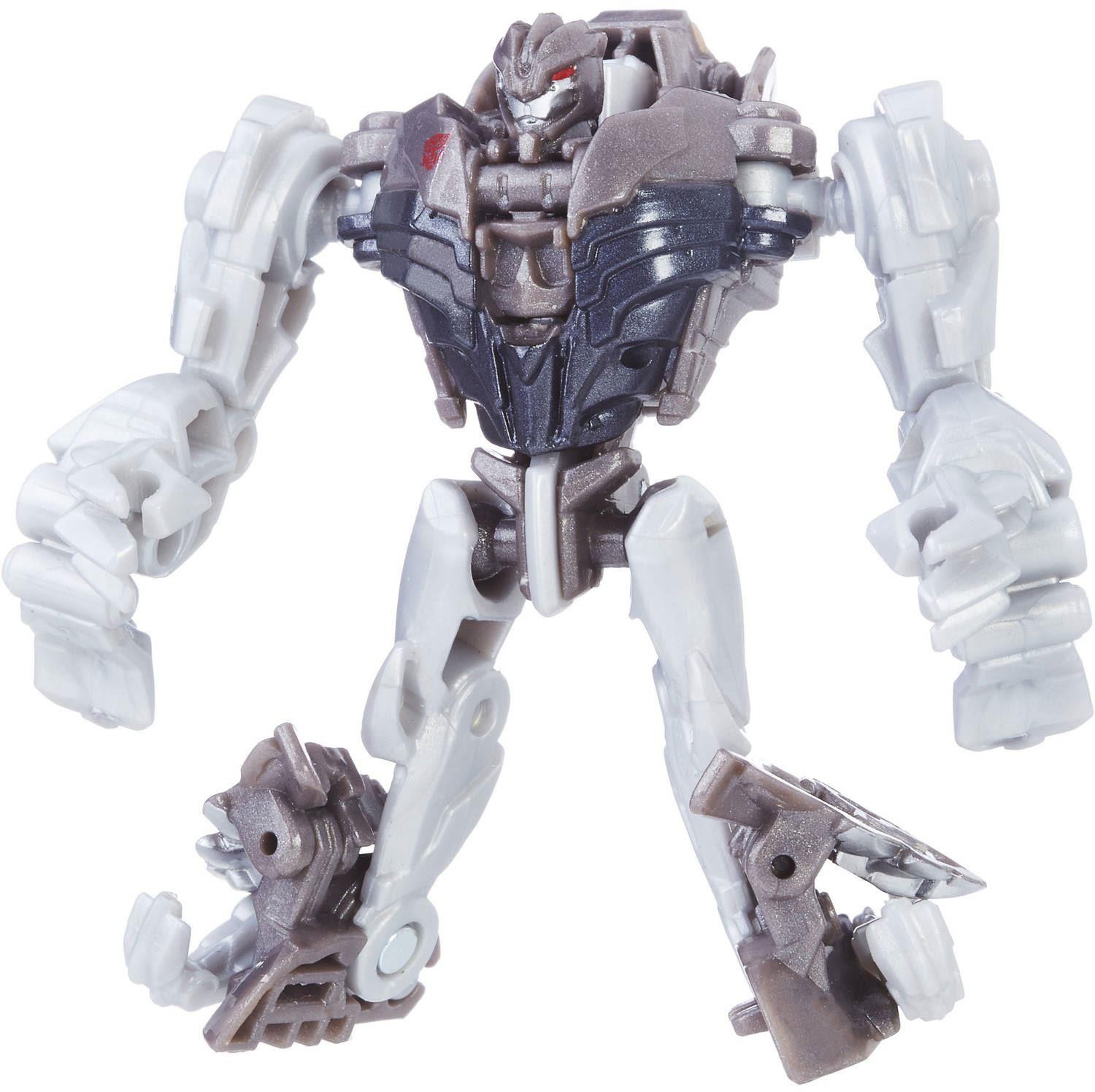 Transformers: The Last Knight Legion Class figures are smaller-scale figures that feature classic Transformers conversion. Change this Legion Class Grimlock figure between robot and dinosaur modes in 6 steps.