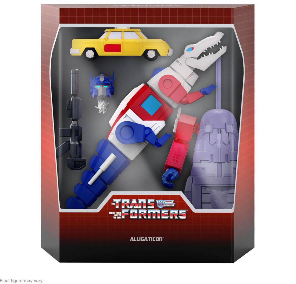 environmentally aware! When they tried to turn New York City into New Cybertron, they didn't just dump the disassembled parts of Optimus Prime into a landfill, they upcycled most of them into the wild beast Alligaticon and repurposed his right arm as part of the Decepticon Tower defense system. This 7" scale highly articulated Transformers ULTIMATES! figure of the Alligaticon measures 11" long and comes with accessories like the Battle Taxi, Decepticon Tower, and disembodied Optimus Prime's head. Adding the made-to-order Alligaticon ULTIMATES! figure to your Transformers lineup is a surefire strategy to successfully upgrade your Transformers collection!
