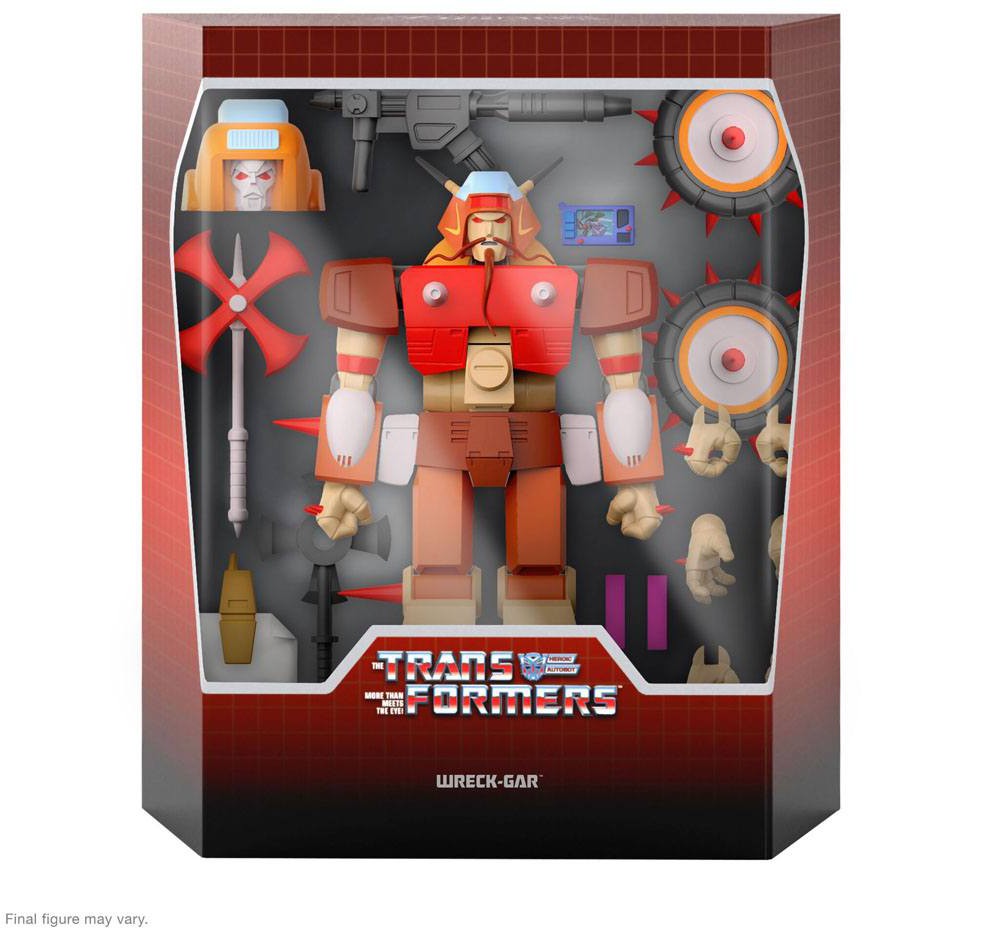 Denna 7-tumsskaliga ledade Transformers ULTIMATES!-figur av Wreck-Gar kommer med utbytbara huvuden och händer samt vapen och tillbehör baserade på G1 figuren.