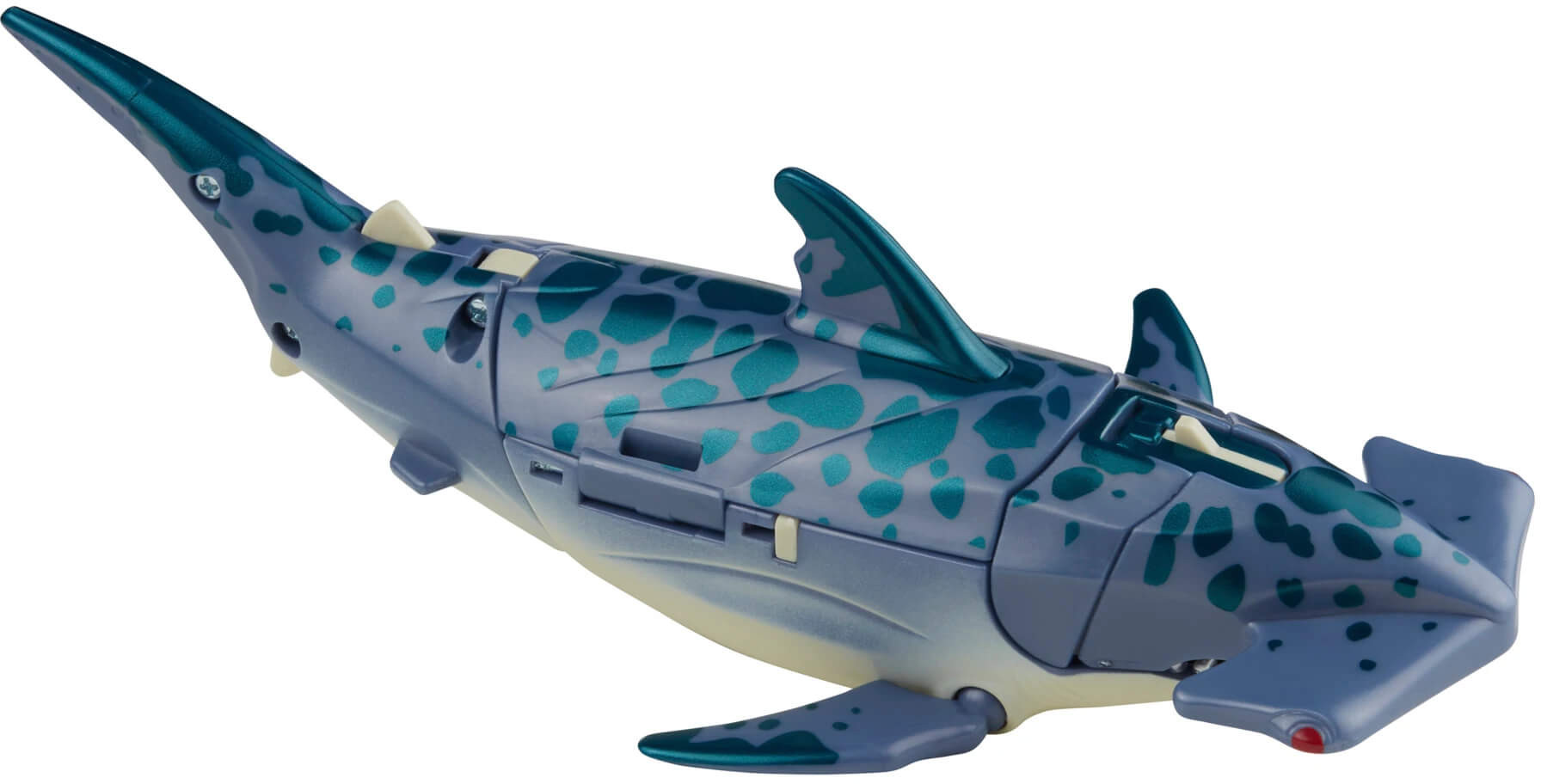 Upon finding the enemy, Cybershark launches his robotic hammerhead to knock 'em out cold, then finishes the job in robot mode by filleting his prey with his switchblade tail!