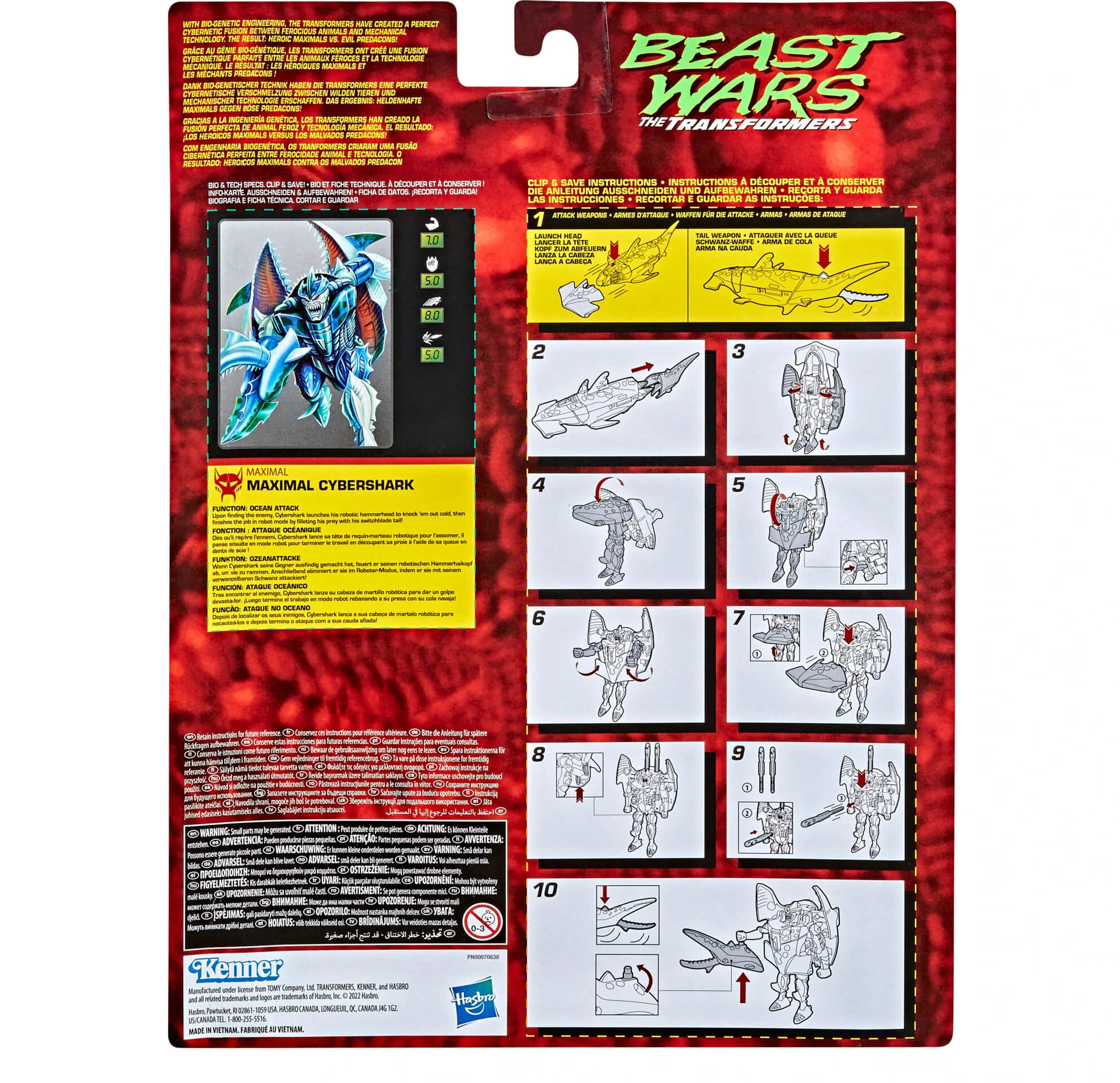 (Re)start a vintage Beast Wars collection with this Transformers: Vintage Beast Wars Maximal Cybershark figure! Inspired by the classic 90s toy, this Maximal Cybershark toy is designed like the original version -- including figure styling, packaging, and art from the 1997 Beast Wars releases, plus classic tech specs and accessories.