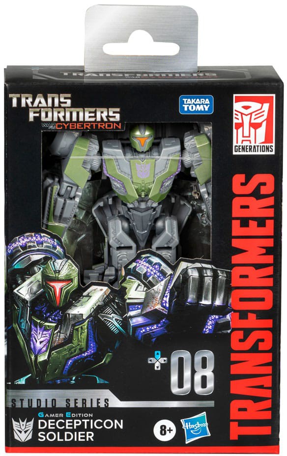 Bring the epic action from the Transformers video games into your collection with the Transformers Studio Series Deluxe Class 08 Gamer Edition Decepticon Soldier action figure, inspired by the Transformers: War for Cybertron video game! Transformers Studio Series Gamer Edition toys are collectible action figures that feature video game-inspired details and accessories. Convert the Studio Series Transformers action figure from robot to Cybertronian sports car mode in 12 steps and pose the Decepticon Soldier toy in the included Save Zeta Prime removable backdrop scene. Look for more Transformers Studio Series Gamer Edition collectible figures to build a video game-inspired collection