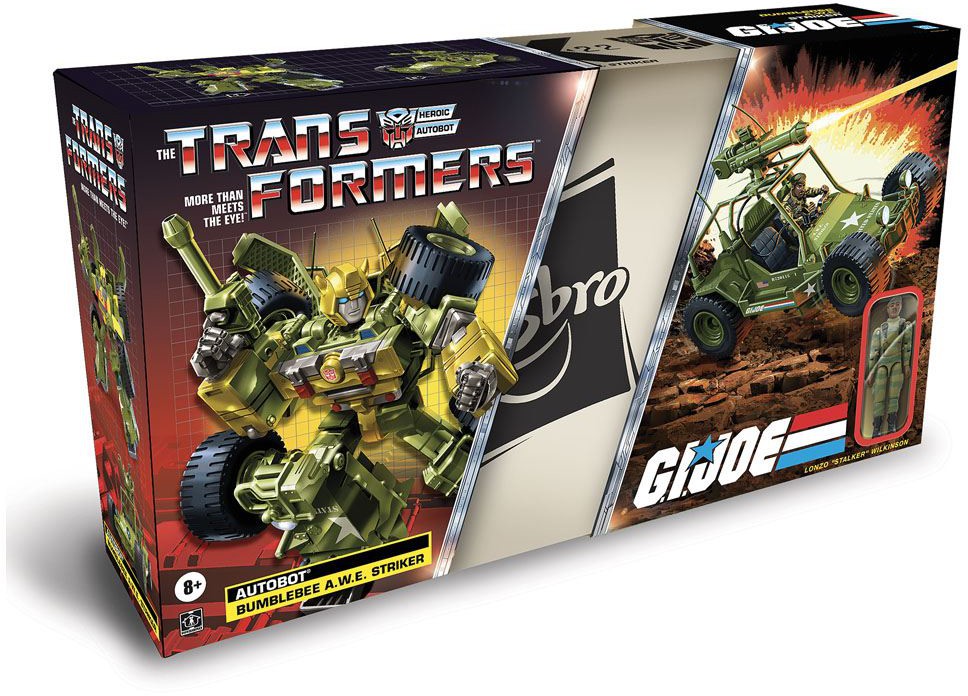 Världar möts i denna mash-up mellan Transformers och G.I. Joe. Bumblebee A.W.E. Striker konverterar från robot till fordon i 21 steg och kommer tillsammans med en G.I. Joe Retro Lonzo "Stalker" Wilkinson figur. Kommer med kanon- och vapentillbehör. I skala med klassiska A.W.E. Striker leksaken från 1985.