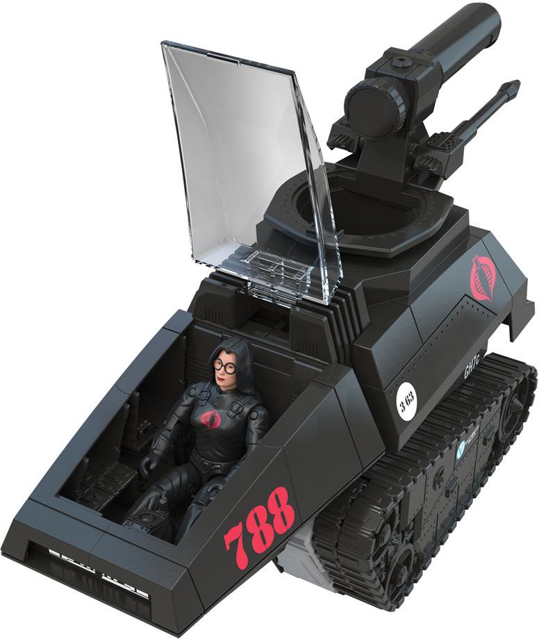 Worlds collide in this Transformers-G.I. Joe mash-up pack! The Decepticons and Cobra team up to conquer the world! Baroness and Megatron, disguised as a H.I.S.S. Tank, plan the next Cobra attack. The Megatron H.I.S.S. Tank toy converts from robot to tank mode in 28 steps and comes with G.I. Joe Retro Baroness figure. Both figures feature deco and details based on the worlds of Transformers and G.I. Joe. Includes fusion cannon, backpack, and weapon accessories. Accurate scale to the 1983 H.I.S.S. Tank toy. Display Baroness figure at the turret and in the H.I.S.S. tank vehicle mode. Packaging is inspired by a mash-up of the classic '80s toys with retro artwork. Baroness toy comes on a card back with file card.