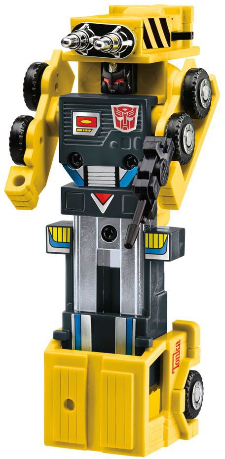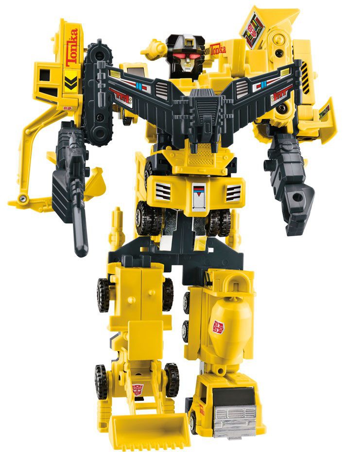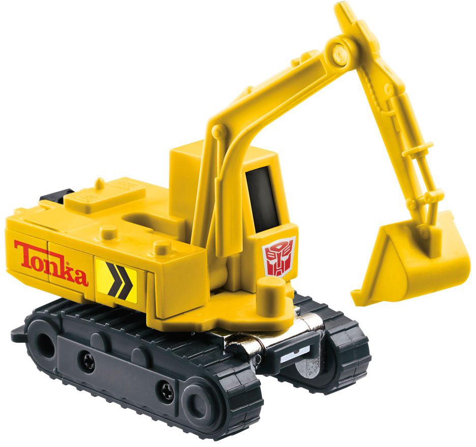 Världar kolliderar i det här Transformers-Tonka mash-up-paketet! Fiender har inte en chans när du är byggd för att ta dig an de tuffaste jobben! Sex olika Tonka-anläggningsfordon kombineras för att bilda den mäktiga Tonkanator! De mindre figurerna konverterar från robot- till byggfordonläge i 4-5 steg. Autobot Mega Dozer konverterar till bulldozerläge, Power Digger konverterar till grävläge, Autobot Skyhook konverterar till kranläge, Mega Hauler konverterar till mäktigt dumperläge, Motormix konverterar till cementblandarläge och Motor Load konverterar till frontlastarläge. Figuren har klassisk gul deco inspirerad av Tonkas byggleksaker.