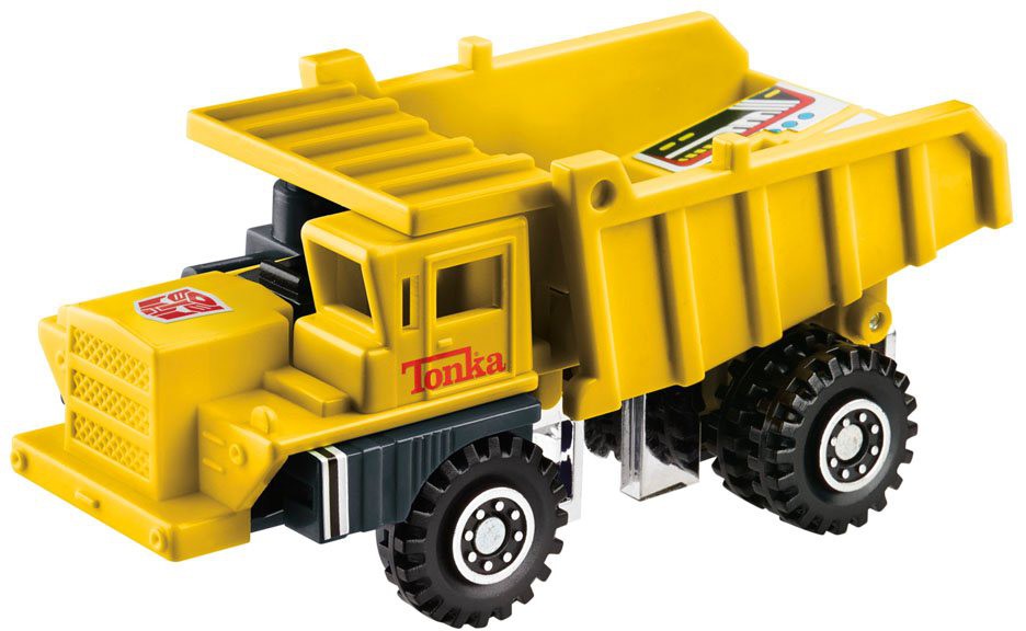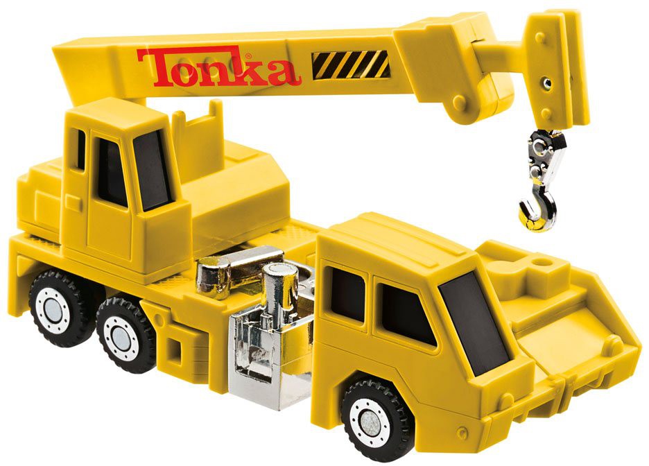 Worlds collide in this Transformers-Tonka mash-up pack! Enemies don't stand a chance when you're built to take on the toughest jobs! Tonka construction vehicles take on new forms as Transformers robots that combine to form the mighty Tonkanator! Figures convert from robot to construction vehicle mode in 4-5 steps. Autobot Mega Dozer converts to bulldozer mode, Power Digger converts to digger mode, Autobot Skyhook converts to crane mode, Mega Hauler converts to mighty dump truck mode, Motormix converts to cement mixer mode, and Motor Load converts to front end loader mode. Features classic yellow deco inspired by Tonka construction toys. Comes with 6 sticker sheets, 2 launchers, 4 missiles, and 8 blaster accessories.