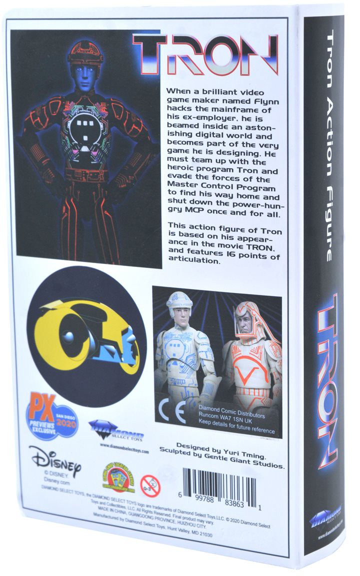 Everyone loves Tron, and real fans love it on VHS! That's why this exclusive variant figure is sporting colors based on the old VHS packaging, and comes packaged in a real VHS-style box! The 7-inch action figure includes multiple identity discs with energy effects, and will react to a black light. Sculpted by Gentle Giant Studios and limited to only 3,000 pieces.