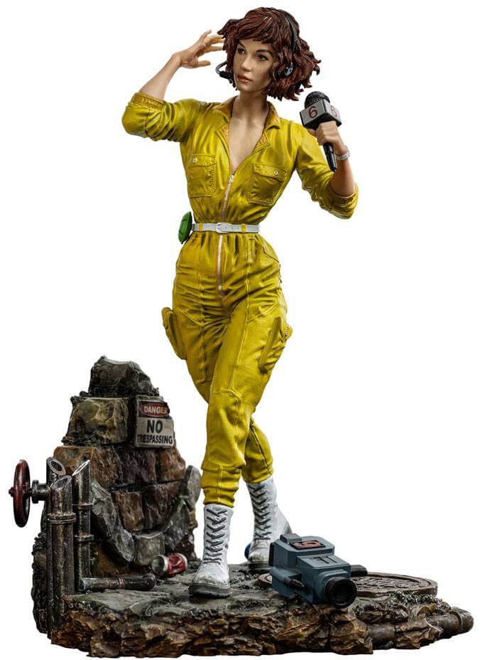 walks on a base infiltrating the sewer galleries wearing her distinctive yellow jumpsuit with white boots, she advances describing every clue she finds, narrating every step with her mic, or registering all the images with her portable camera at her feet, using all the cunning and deduction to anticipate the plans of the fearsome villain Shredder and his Foot Clan or any other threat to her city or her mutant ninja turtle friends. On another "extra" special release, Iron Studios bring their statue "April O'Neil BDS - TMNT - Art Scale 1/10", with the intrepid journalist ally of the Ninja Turtles.