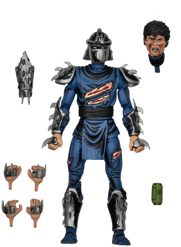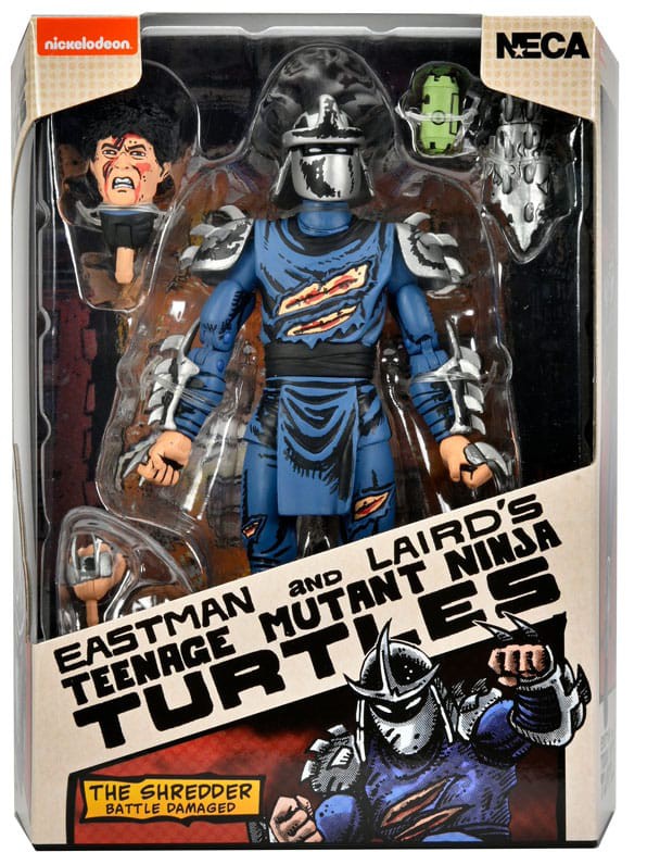 Based on the original Eastman & Laird Teenage Mutant Ninja Turtles comic books from Mirage Studios! Oroku Saki has inherited the role of The Shredder from his fallen brother, Oroku Nagi. The bitter rivalry between the Oroku and Hamato clans rages on, and The Foot will stop at nothing until their former master is avenged. This battle-damaged 7" scale action figure includes interchangeable hands, extra head, thermite grenade, and destroyed gauntlet. Comes in special comic-book tribute window box packaging illustrated by Kevin Eastman.