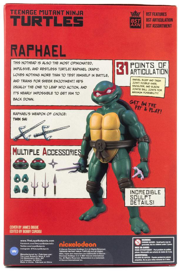 The Loyal Subjects has teamed up with IDW to create a Teenage Mutant Ninja Turtles BST AXN x IDW action figure and comic book bundle! An IDW inspired colorway of all four BST AXN Teenage Mutant Ninja Turtles with an accompanying IDW book (100 pages compiled from four different comics)! Each of the four book covers adorns the portrait of one of the TMNT heroes, and accompanies the correlating BST AXN figure; i.e. Raphael IDW book cover will accompany the Raphael BST AXN figure. All four comic book compilations are different.