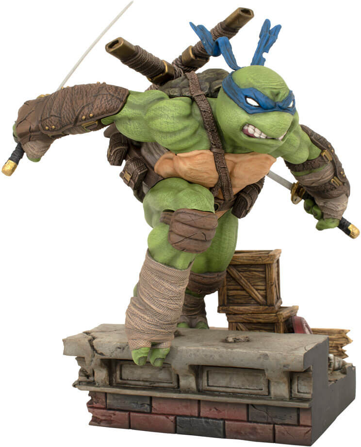Du har aldrig sett TMNT så här förut! DST:s nya serie av dynamiska Teenage Mutant Ninja Turtles Gallery Dioramas startar med katana-svingande ledaren Leonardo! Samla alla fyra på deras takbaser för att bilda ett stort diorama! Detta 23 cm diorama är tillverkat av högkvalitativ PVC och kommer förpackat i en fönsterkartong i fullfärg. Designad av Kinetic Underground; skulpterad av Sandro Luis Sampaio!
