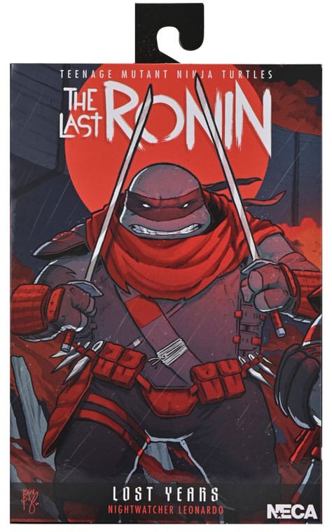 Från Teenage Mutant Ninja Turtles serietidningsserie, The Last Ronin - The Lost Years! Berättelsen om Last Ronins första uppdrag fortsätter samtidigt som nya hemligheter från Turtles förflutna avslöjas. Efter att Raphael har fallit omgrupperar de återstående sköldpaddorna och bildar Nightwatchers tillsammans med April och Casey. Leonardo-figuren har ett stiliserat färgjobb för en autentisk serietidningslook. Tillbehören inkluderar två huvuden, extra händer och katanas! Levereras i samlarvänlig förpackning med originalillustrationer av The Last Ronin-tecknaren Ben Bishop.
