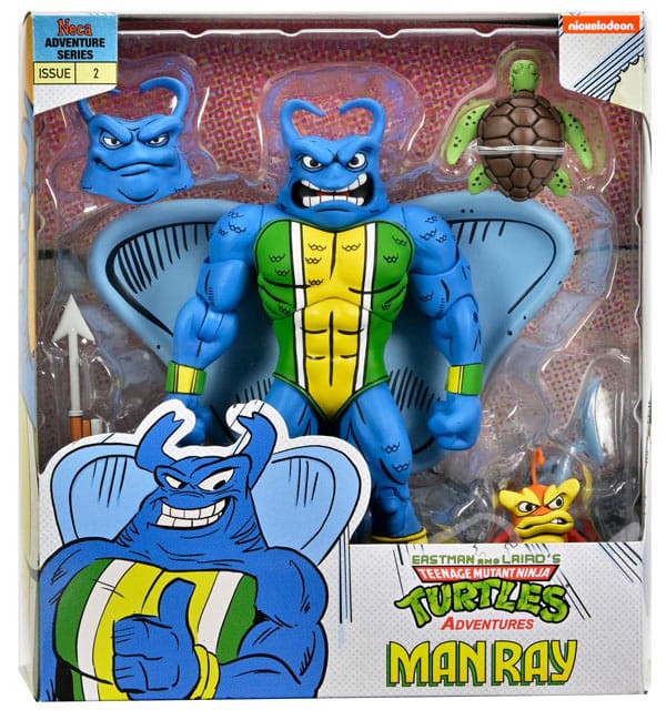 This new action figure from NECA is based on Eastman and Laird's Teenage Mutant Ninja Turtles Adventures comic book series from Archie Comics! Hero of the deep and fishy friend to the Turtles -- the Mighty Mutanimal Man Ray and his lil chum Bubbla are here to save the oceans! This 7" scale figure is detailed as depicted in the comics, and includes extra head, extra hands, harpoon, and sea turtle. Comes in collector-friendly window box packaging featuring all new illustrations by comic book artists Ken Mitchroney and Gary Fields.