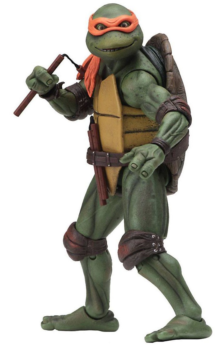 From the 1990 "Teenage Mutant Ninja Turtles" movie comes this detailed action figure. It stands approx. 18 cm tall and comes with accessories in a window box.